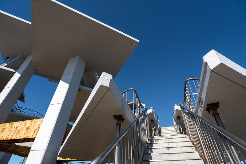 幾何学的に配置された展望台と繋ぐ階段。