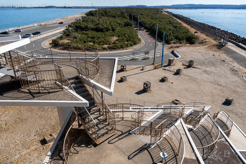 富津岬の陸地はこれだけ。その長細さがよく分かる。位置的にはチーバくんのヘソとしても良かったのだろうけど、あらぬ誤解が生じることは必須。